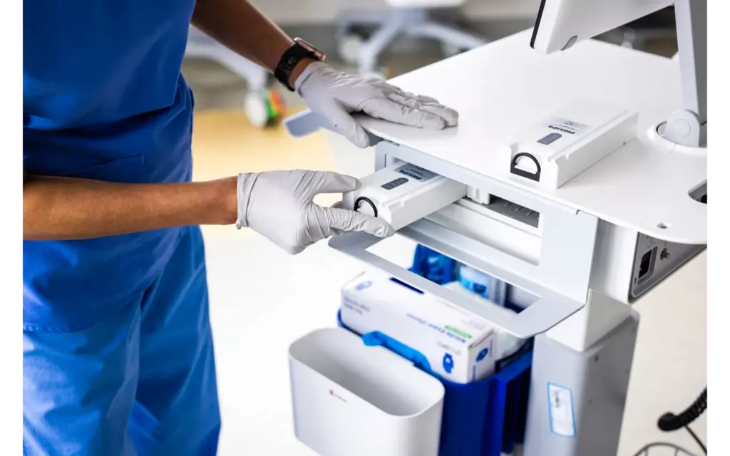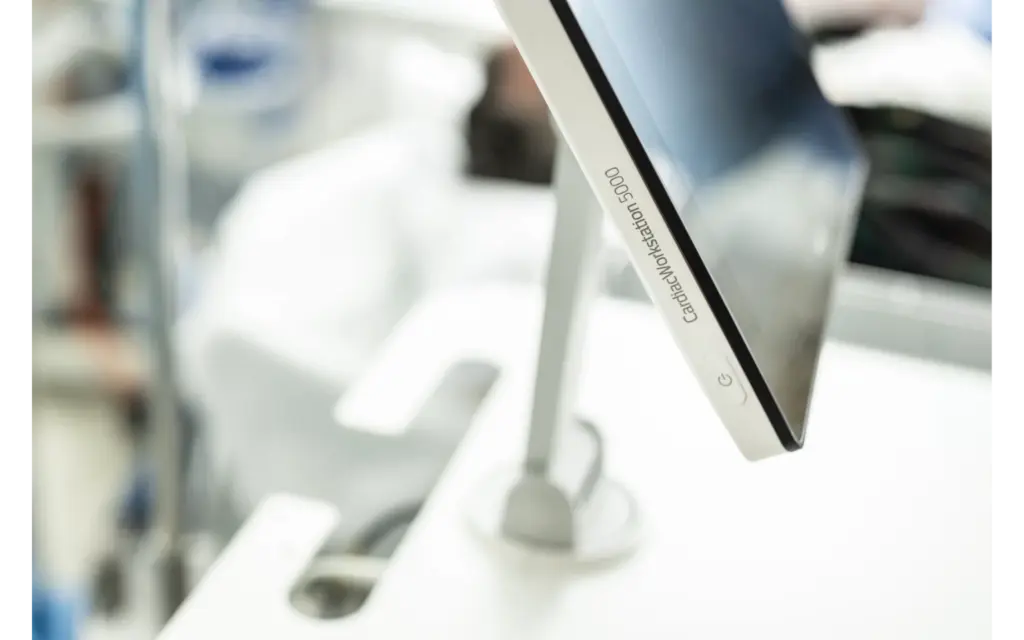 Philips Cardiac Workstation to stacja robocza EKG na mobilnym wózku z wieloma funkcjami. Duży, dotykowy ekran o wysokiej rozdzielczości można swobodnie pochylać i obracać. Port HDMI pozwala podłączyć zewnętrzny ekran, aby każdy mógł zobaczyć zapis EKG np. w celach edukacyjnych. Zintegrowany wózek posiada: duży blat roboczy, szuflady z przegrodami na akcesoria, kosz na odpady, dedykowane miejsce na dodatkowy papier, rączki do transportu czy duże blokowane koła. Czy może być lepiej? Tak. Wózek ma specjalny wysięgnik, aby przewody pacjenta nie plątały się oraz możliwość regulowania wysokości wózka, dostosowując się do wzrostu operatora!