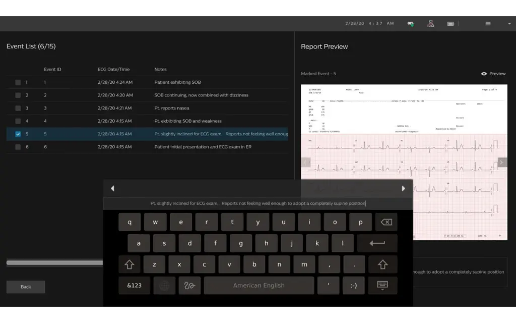Dostęp do danych demograficznych pacjenta oraz bardzo rozbudowany algorytm do analizowania danych EKG Philips DXL pozwala szybko wykonać badanie w najlepszych dla siebie warunkach. Podczas badania operator może zapisywać własne odcinki, robiąc „PrintScreen”, dodawać własne notatki, wykonywać podstawowe i zaawansowane pomiary odcinków, szybko przeglądać wiele zapisów EKG czy też porównywać na ekranie 2 zapisy z monitoringu EKG koło siebie.