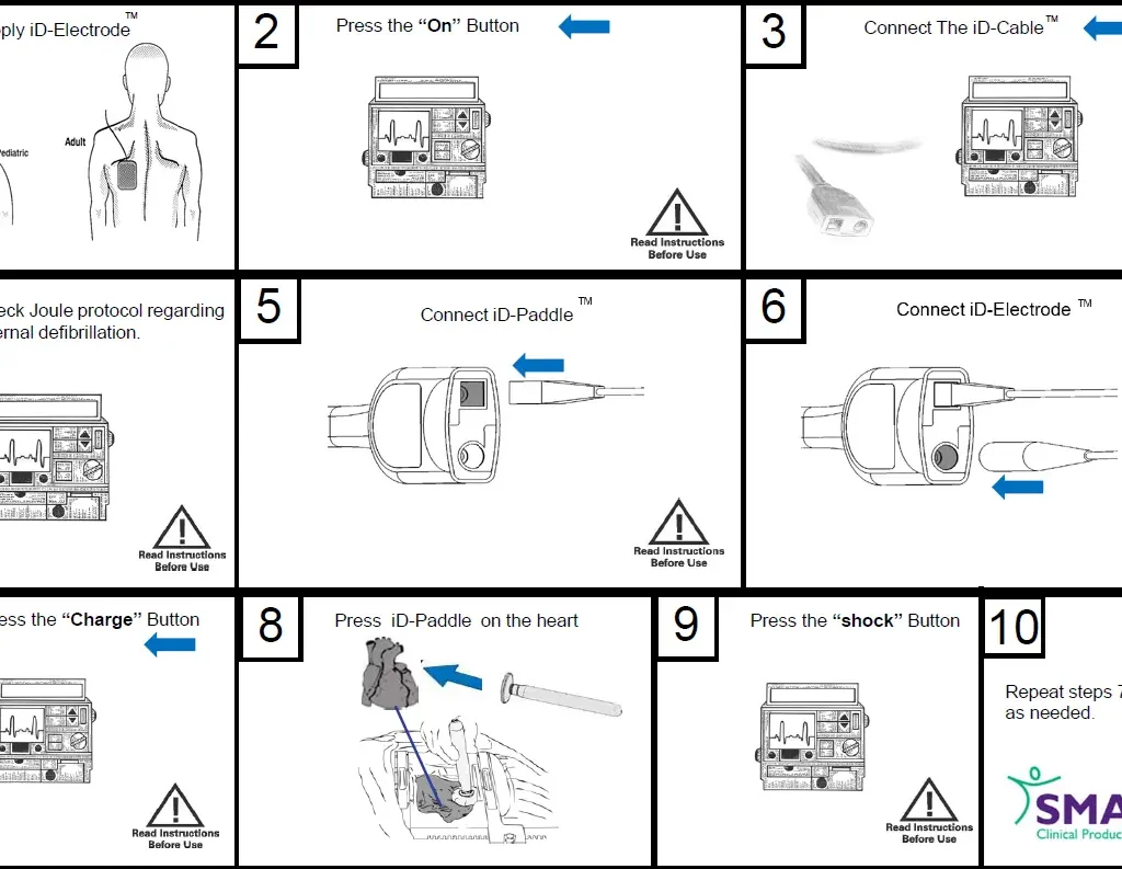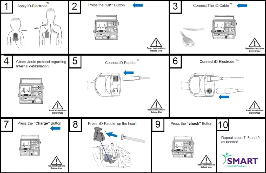 Elektrodę iD-Electrode umieszcza się na plecach pacjenta, natomiast łyżkę iD-Paddle na sercu pacjenta. Łyżka iD-Paddle i elektroda iD-Electrode są podłączone do defibrylatora za pomocą kabla iD-Smart Cable.