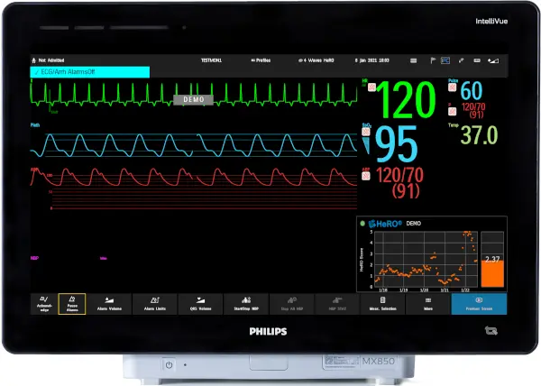Technologia monitorowania jest całkowicie nieinwazyjna, wykorzystuje wyłącznie dane funkcji życiowych zbierane przez kardiomonitor.