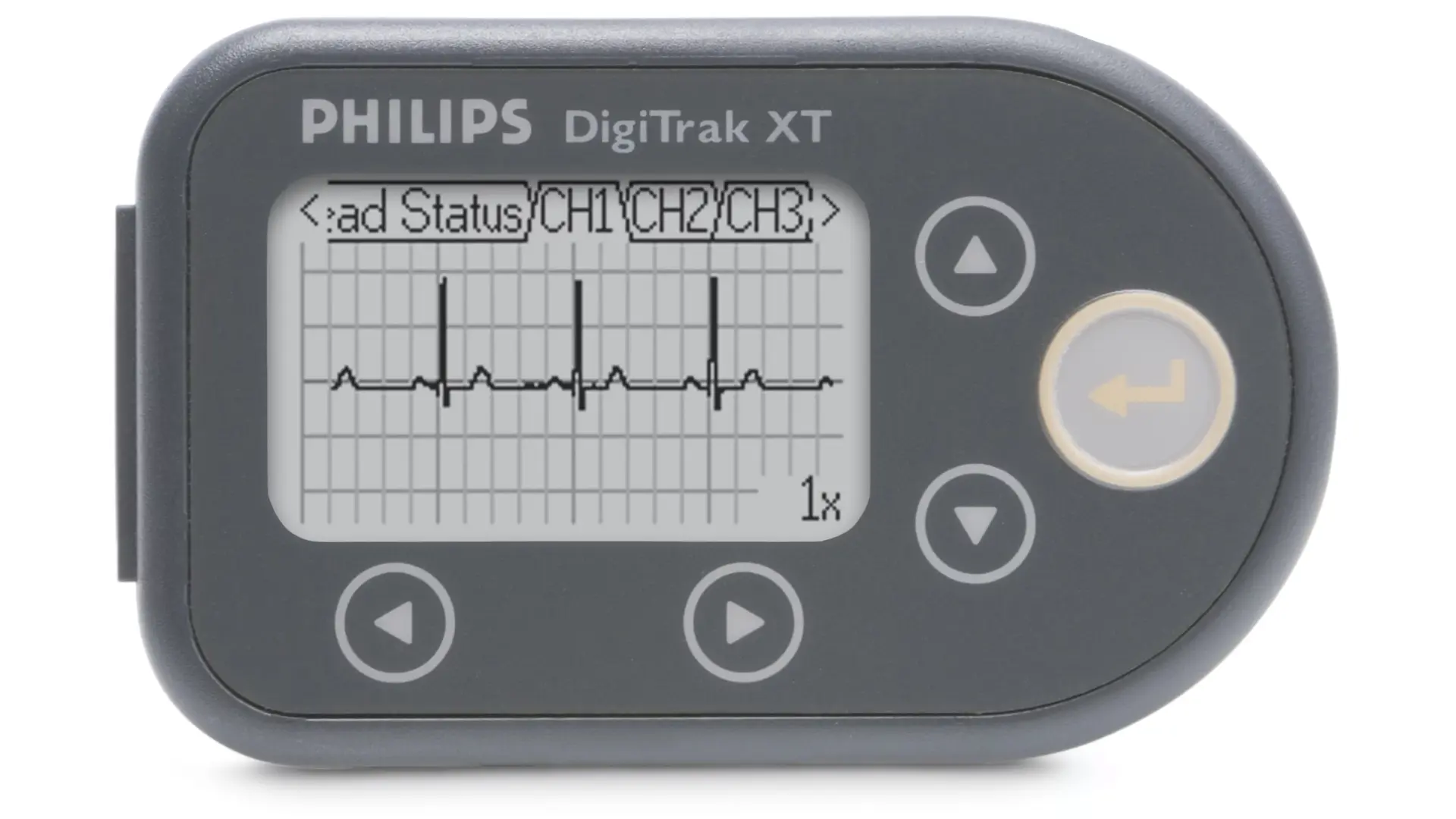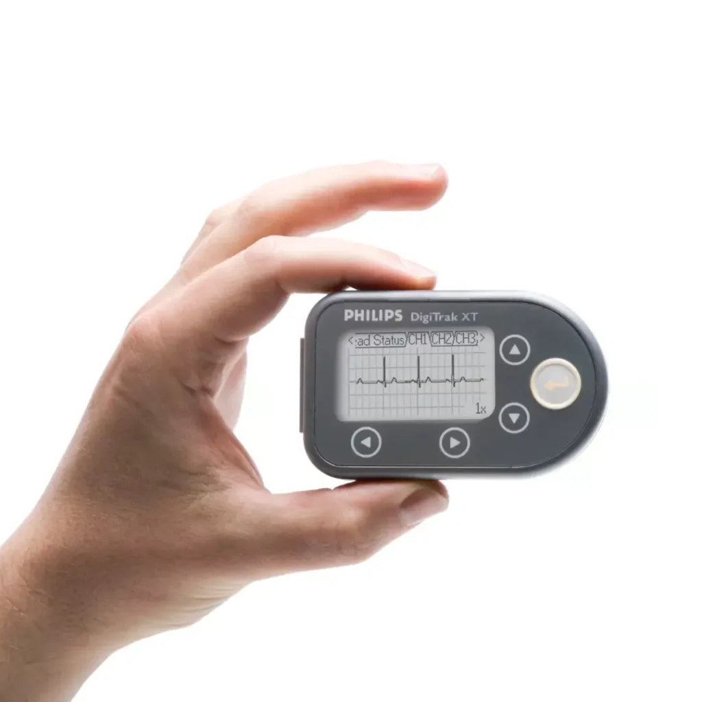 Philips DigiTrak XT to lekki, intuicyjny rejestrator holterowski o ergonomicznym kształcie. Urządzenie obsługuje się jedynie za pomocą 5 klawiszy funkcyjnych. Na ekranie wyświetlana jest mapa odprowadzeń EKG w systemie EASI. Taki schemat odprowadzeń pozwala wyeliminować artefakty. Dzięki bardzo niskiej wadze (ok. 80g wraz z baterią typu AAA) oraz specjalnym zaczepom oraz paskom holtery Philips zapewniają wygodę noszenia oraz dyskrecję. Na ekranie można podejrzeć jeden z 3 kanałów, aby wizualnie sprawdzić zapis EKG. Duży wyczuwalny przycisk jest znacznikiem zdarzeń pacjenta, co pozwala zarejestrować wszelkie zdarzenia, które wystąpią podczas jego noszenia. Ułatwia to również pracę kardiologowi opisującemu zapis EKG pacjenta metodą holtera.